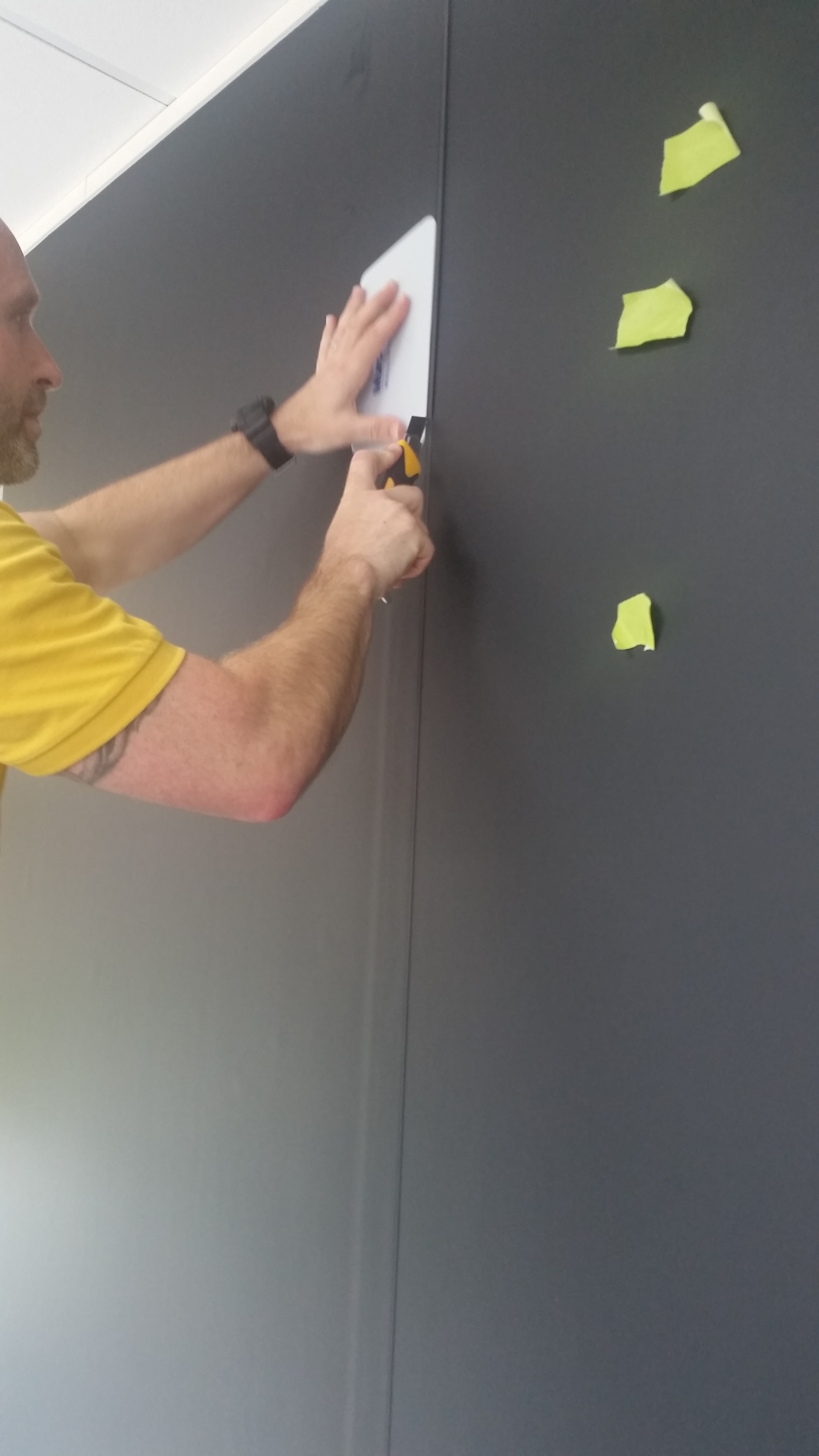 By using our dry wipe/white gloss faced Flexometal sheet it is possible to convert a whole wall into a magnetic whiteboard. Ideal for office and meeting room environments. Use our super strong ready-mix wall adhesive and follow our hanging instructions to apply the sheet directly to the wall. Clients who have installed dry wipe magnetic walls using our flexometal sheet include the Cabinet Office, John Lewis, Waitrose, Hewlett Packard, Asda, GlaxoSmithKline, N Power and many more.